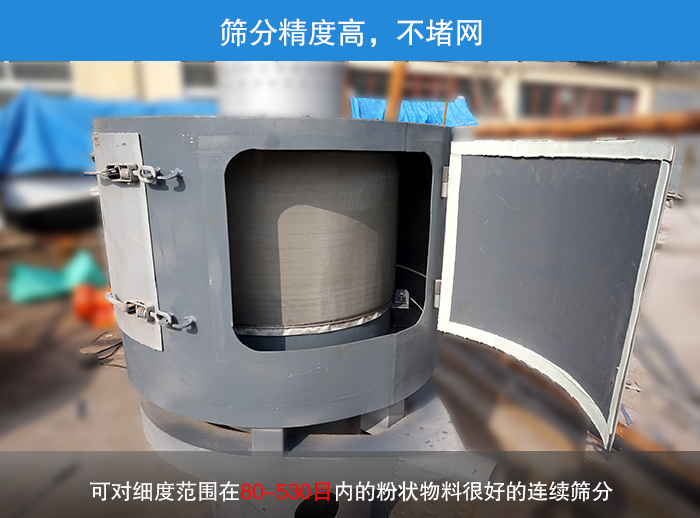 氣流篩分機是一種對微細粉進行有網(wǎng)篩分的高精度篩分設(shè)備,可對細度范圍在80-530目內(nèi)的粉狀物料很好的連續(xù)篩分,篩網(wǎng)可任意更換,篩分精度高,而且大漢氣流篩分機可以對結(jié)塊的物料進行再破碎,可以解決輕質(zhì)碳酸鈣堵網(wǎng)機率。